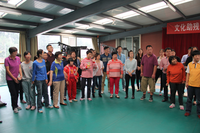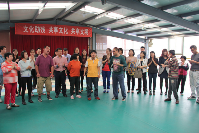 天睿康复中心的学员们非常热情,主动与大家有礼貌地打招呼和交谈,演唱了《我和你》、《奔跑》、《世上只有妈妈好》等多首经典歌曲。森田员工也积极的与学员们一起唱歌,做游戏,气氛温馨而活跃,欢快的笑声在整个康复服务中心飘荡。
